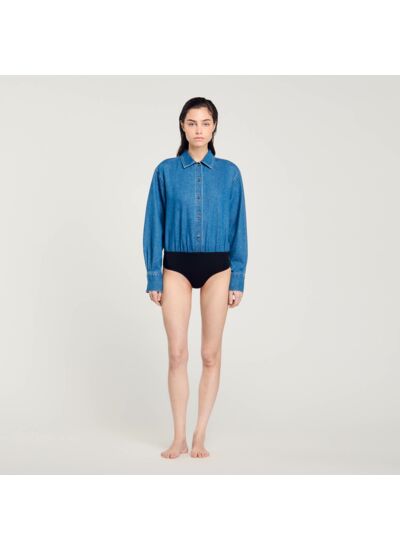 Chemise body en jean munie de manches longues, d'une patte de boutonnage boutonnée et d'une culotte contrastée ajustée.