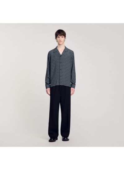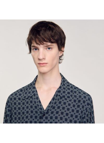 Chemise fluide à manches longues, col hawaïen et fermeture boutonnée ornée d'un imprimé grillage.
