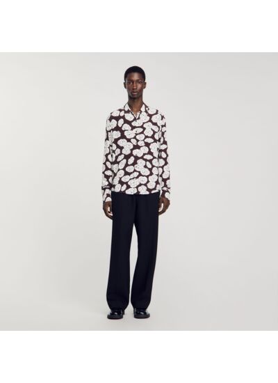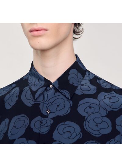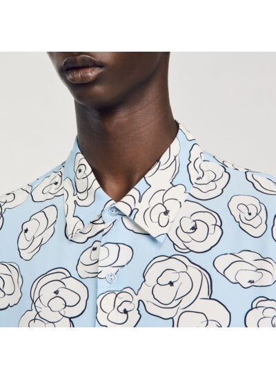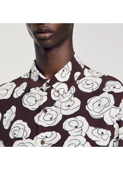 Chemise munie d'une fermeture boutonnée, d'un col classique, de manches longues, et ornée d'un imprimé camélias.