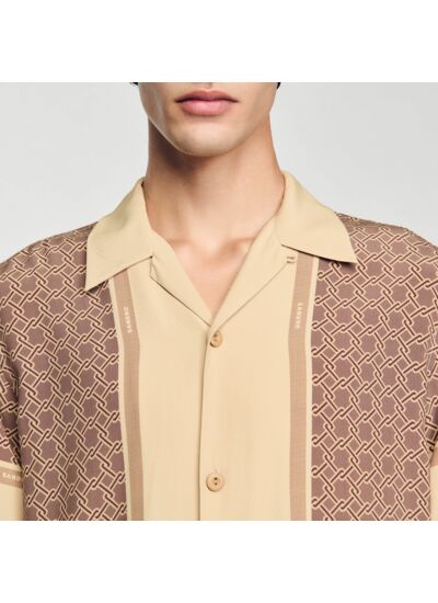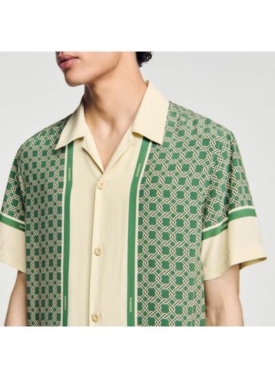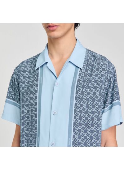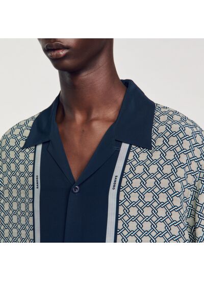 Chemise à manches courtes et col requin munie d'une fermeture boutonnée, ornée d'un imprimé cross.