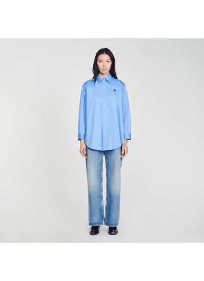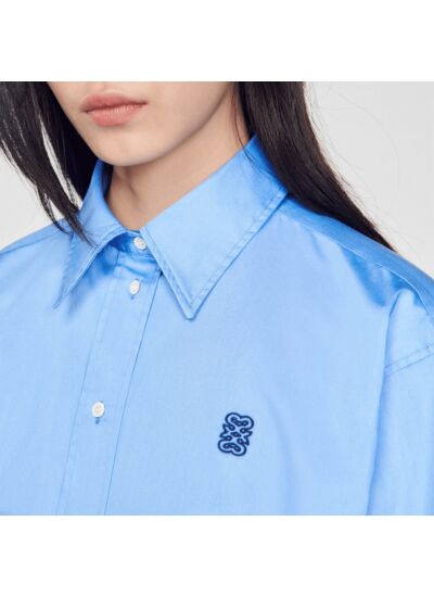Chemise oversize en coton munie de manches longues, d'une fermeture boutonnée et ornée d'une broderie double S contrastée à la poitrine.