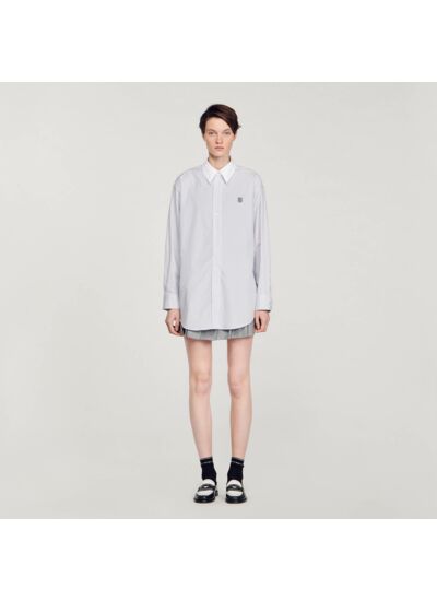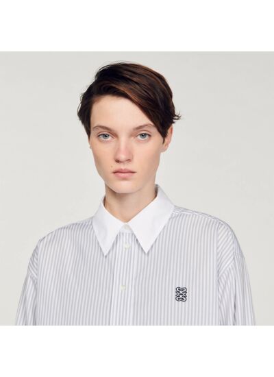 Chemise oversized à rayures, munie de manches longues, d'un col contrastant et ornée d'une broderie double S contrastée à la poitrine.