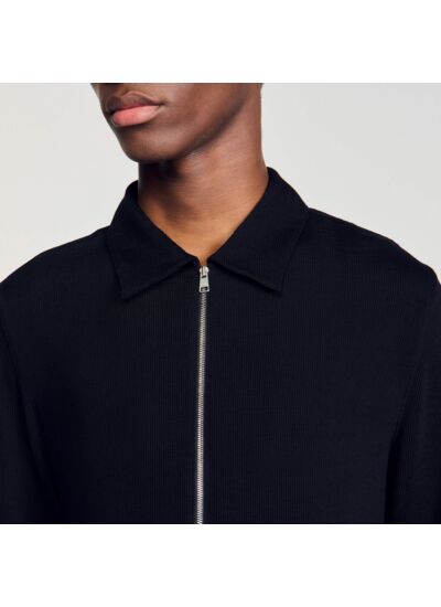 Chemise plissée à manches longues, col classique et fermeture zippée