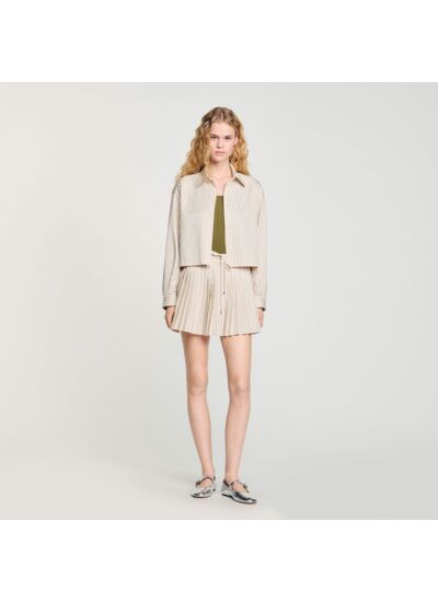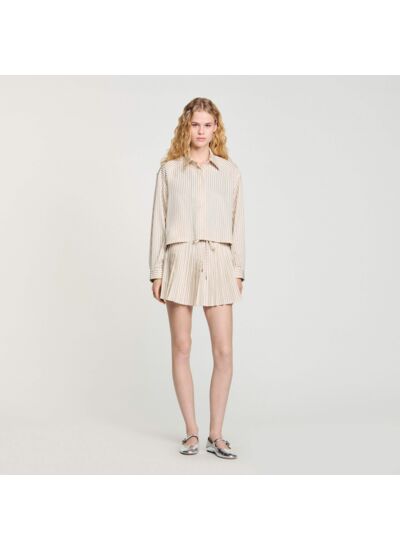 Chemise courte à rayures strassée munie de manches longues, d'un col classique et d'une patte de boutonnage.
