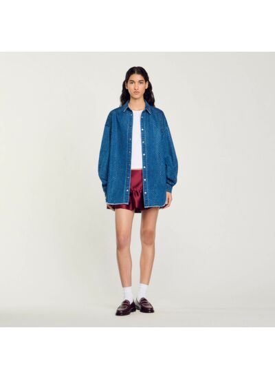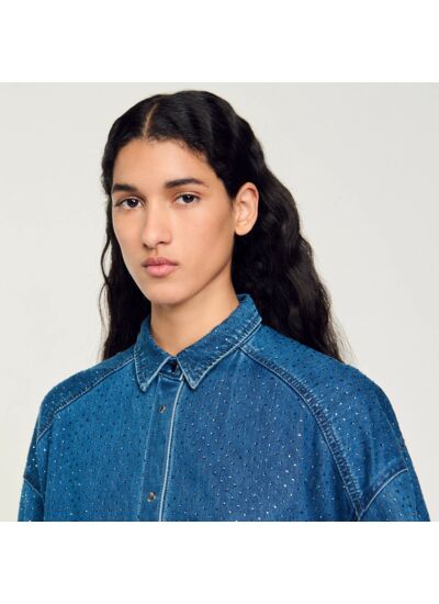 La chemise strassée en jean Sandro se marie parfaitement avec un pantalon noir ou une jupe en cuir pour un look chic et urbain. Elle peut aussi s’associer à un jean brut pour un style casual revisité. Son design unique en fait une pièce maîtresse pour vos soirées ou vos sorties décontractées.