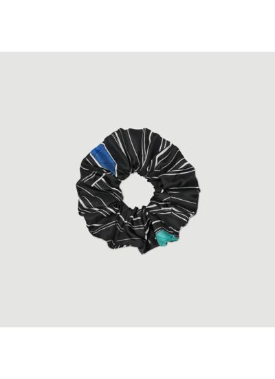 Chouchou en soie orné d'un imprimé rayures.
