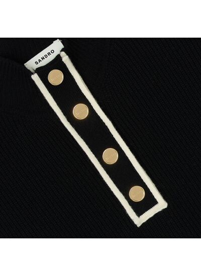 Quelles sont les caractéristiques principales du col en maille bicolore Sandro ? Ce col en maille bicolore allie élégance et confort grâce à sa finition soignée et son design moderne. Il apporte une touche raffinée à vos tenues tout en offrant une texture douce et agréable à porter.