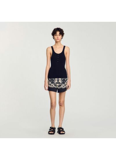 Débardeur en maille finement côtelée muni d'une encolure ronde boutonnée.