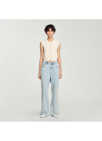 Ce cardigan en tweed est-il adapté aux saisons intermédiaires ? Ce gilet en tweed texturé est idéal pour le printemps et l’automne grâce à sa matière qui offre chaleur légère et respirabilité, parfait pour moduler vos tenues selon la température. Comment entretenir ce cardigan Sandro pour préserver sa qualité ? Nous recommandons un nettoyage à sec pour conserver la texture et la forme du tweed, évitant ainsi tout risque de déformation ou de perte de couleur. Quelle coupe propose ce gilet et comment le porter ? Ce cardigan présente une coupe ajustée qui structure la silhouette tout en restant confortable, il se marie parfaitement avec un jean ou un pantalon habillé pour un look chic et décontracté. Ce modèle convient-il à un usage quotidien ? Oui, sa conception robuste et son style intemporel en font une pièce polyvalente, adaptée aussi bien au bureau qu’aux sorties casual. Quels sont les avantages du tweed texturé dans ce cardigan ? Le tweed apporte une texture riche et un aspect sophistiqué, tout en offrant durabilité et résistance, ce qui garantit un vêtement à la fois élégant et durable.
