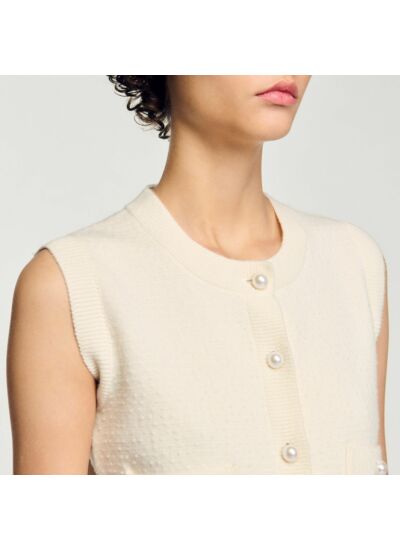 Gilet sans manches en tweed texturé composé de laine et cachemire, muni d'une patte de boutonnage à boutons fantaisie et de finitions côtelées.