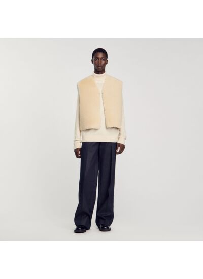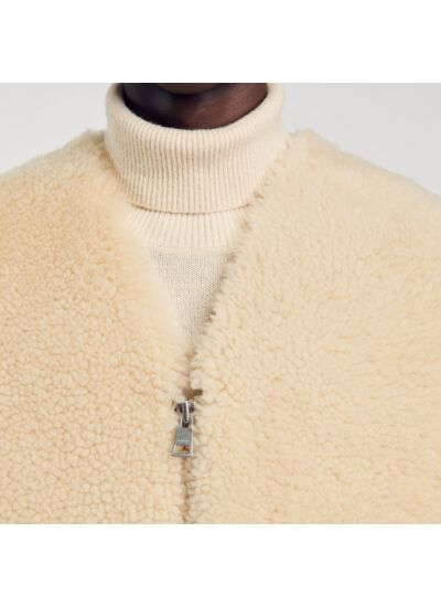 Gilet sans manches en mouton retourné, muni d'une fermeture zippée devant.
