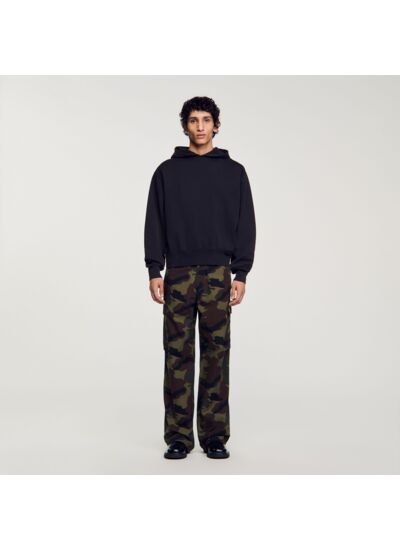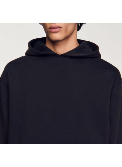 Hoodie à capuche et manches longues orné d'un tag SANDRO sur le côté.
