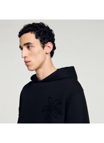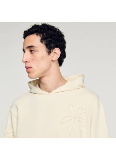 Hoodie à capuche en molleton non gratté muni de manches longues, de poignets et d'une taille côtelés et de poches sur les côtés, orné de fleurs en biais ton sur ton.