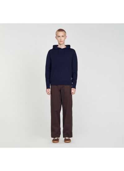 Hoodie en maille double jersey muni d'une capuche, de manches longues, d'une poche kangourou à l'avant, de bords côtes en bas de vêtement et aux poignets, et orné d'un patch en cuir inséré sur le côté.