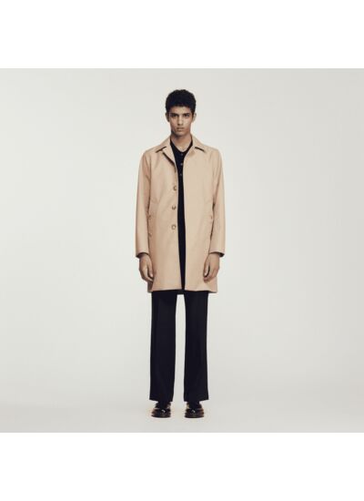Quelles sont les caractéristiques principales de cet imperméable Sandro ? Cet imperméable droit Sandro se distingue par sa coupe épurée et structurée, offrant une silhouette moderne tout en garantissant une protection efficace contre la pluie grâce à son tissu imperméable de qualité.