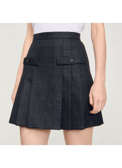 Quelle est la matière de la jupe courte plissée à carreaux Sandro ? Cette jupe est conçue dans un tissu de qualité qui assure tenue et confort, idéal pour un look élégant et moderne.