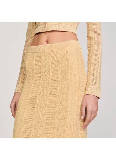 Jupe longue en maille pointelle légèrement évasée sur le bas, munie d'une taille élastiquée
