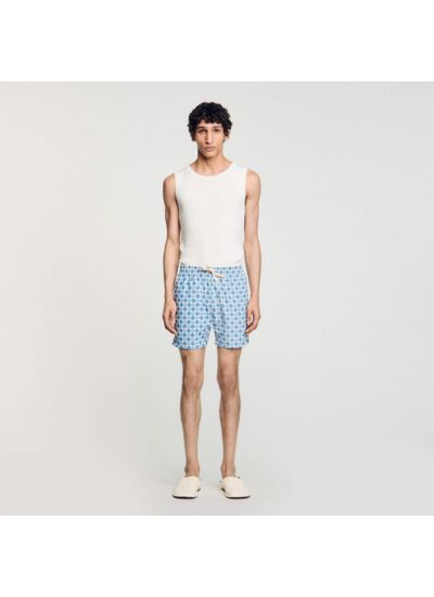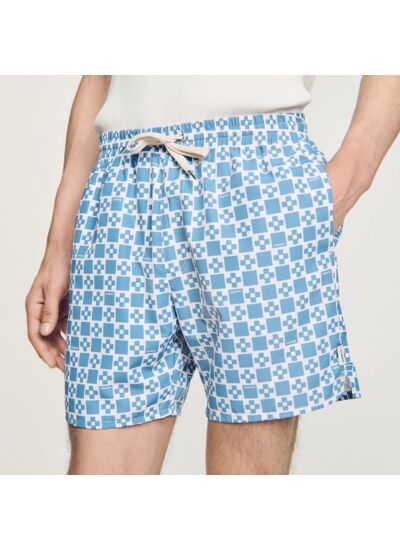 Maillot de bain imprimé Square Cross, muni d'une taille élastiquée au dos et d'un cordon de serrage, de poches plaquées au dos et de fentes sur les côtés.