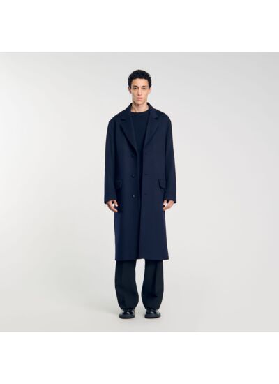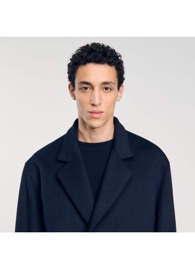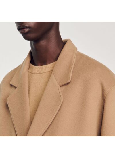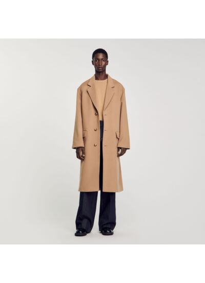 Manteau oversize Sandro Homme Contient de la laine et du cachemire Manches longues Fermeture à 3 boutons Intérieur doublé 2 poches intérieures Grande fente arrière