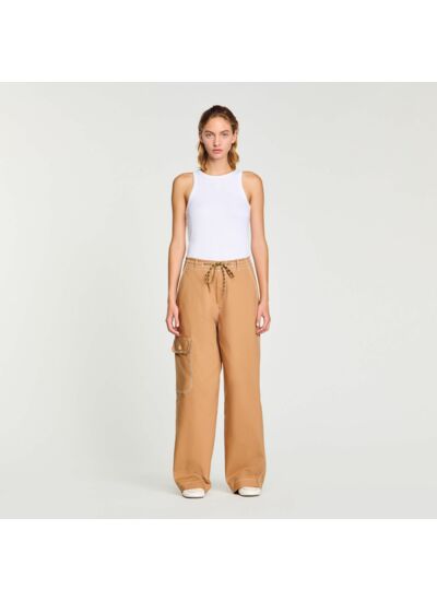 Pantalon cargo muni d'une large poche à rabat sur le coté, et d'un cordon coulissant à la taille.