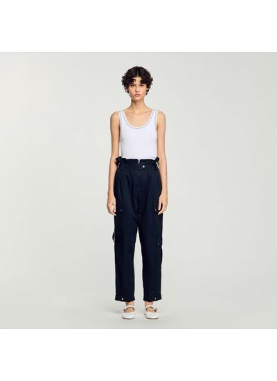 Quelle matière compose ce pantalon cargo Sandro ? Le pantalon est conçu dans un tissu de qualité, sélectionné pour son confort et sa durabilité, assurant une tenue impeccable tout au long de la journée.
