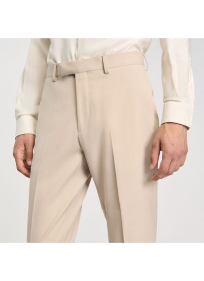 Pantalon de costume à la coupe classique, muni de passants ceinture, de poches et d'une fermeture zippée à crochet.