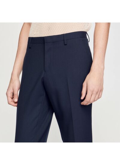 Pantalon de costume en laine mélangée, à pli marqué le long de la jambe, muni de poches sur les côtés et au dos.