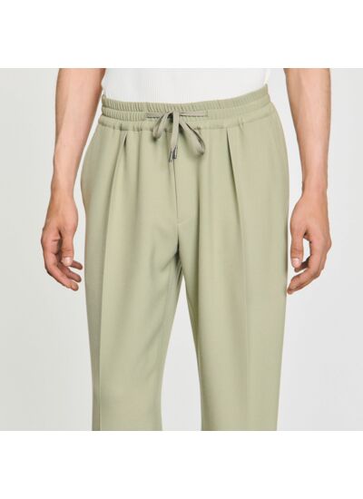 Pantalon droit élastiqué à la taille, muni d'un cordon de resserrage et de poches sur les côtés.