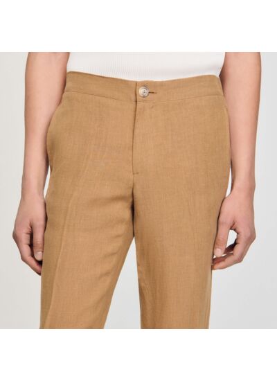 Pantalon en lin à coupe classique muni d'une taille élastiquée au dos.