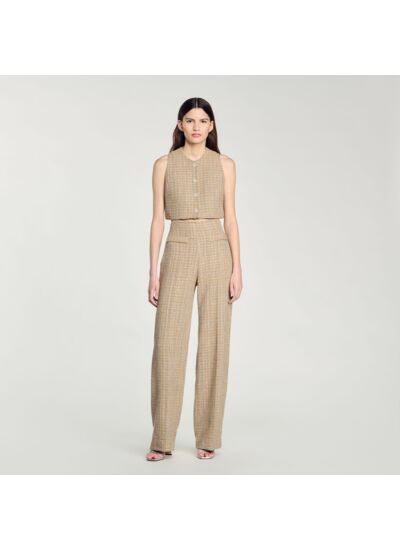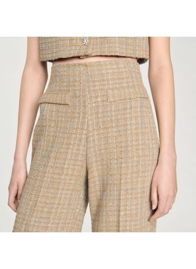 Pantalon droit à jambe large en tweed fantaisie avec motif carreaux.