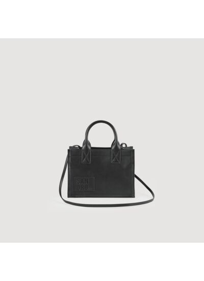 Petit cabas en cuir lisse muni d'une étiquette ton sur ton embossée Sandro, d'une fermeture aimantée, de petites anses et d'un pochon intérieur.