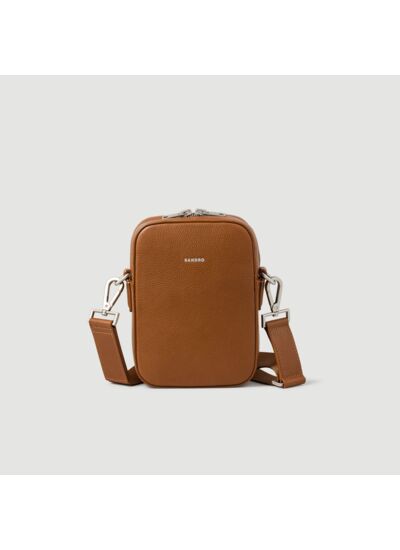 Petit sac en cuir grainé muni d'une bandoulière ajustable, et d'une fermeture zippée à double tirettes.