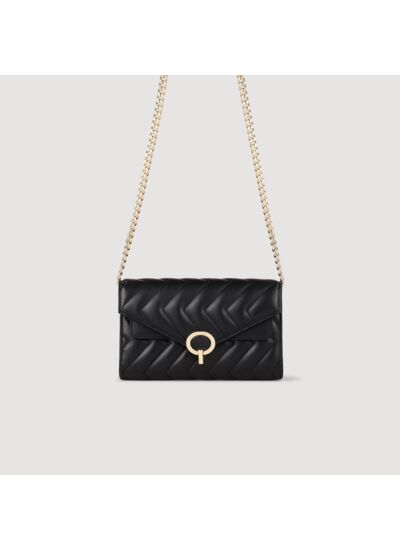 L'emblématique Sac Yza se décline en pochette. Muni d'un fermoir signature graphique, et d'une bandoulière chaîne, elle offre de multiples portés : à l'épaule, en crossbody ou en pochette.