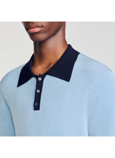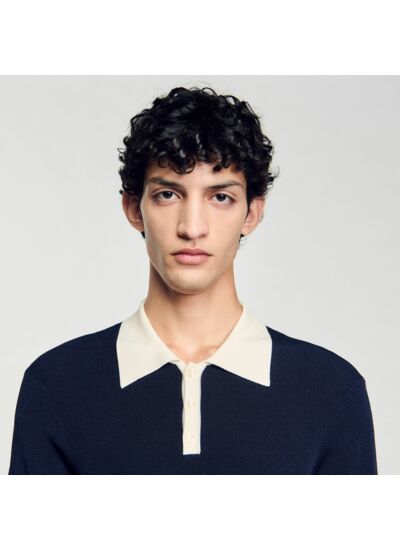 Ce polo bicolore Sandro est-il adapté à un usage quotidien ? Oui, sa maille de qualité assure confort et durabilité, parfait pour un style casual chic au quotidien.