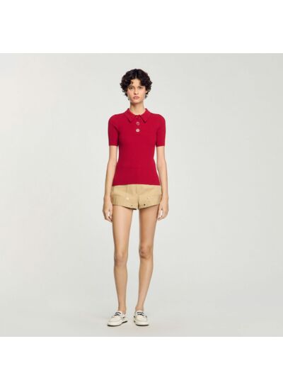 - Polo en maille côtelée Sandro Femme