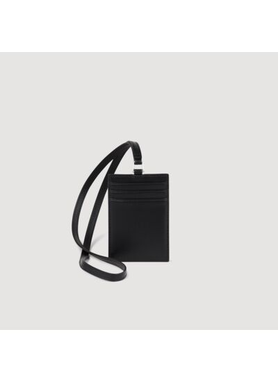 Porte-cartes en cuir lisse muni de 6 fentes à cartes et d'une lanière offrant un porté autour du cou.