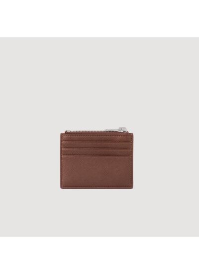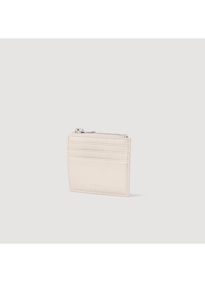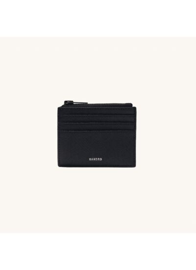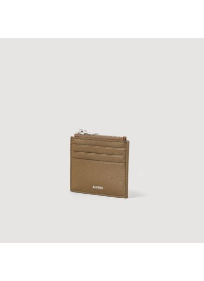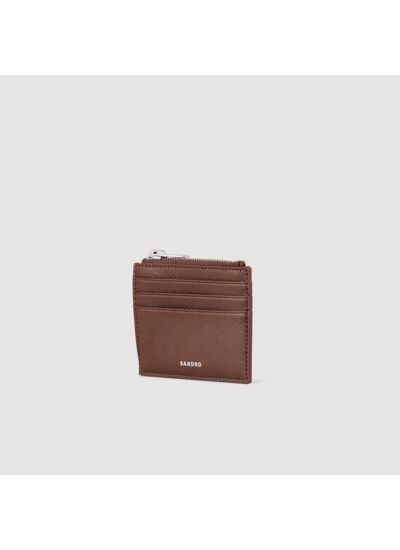 Porte-cartes en cuir reconstitué à motifs Saffiano, muni de 3 fentes à cartes et d'une poche à fermeture zippée et orné d'une signature SANDRO embossée.