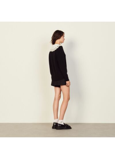 Pull en maille muni d'une encolure en V à col amovible brodé.