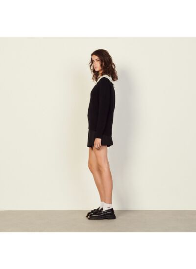 Ce pull Sandro est-il adapté aux saisons intermédiaires ? Oui, sa conception en maille légère associée au col en popeline en fait un vêtement idéal pour le printemps et l’automne, offrant confort et style sans surchauffe.