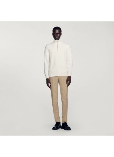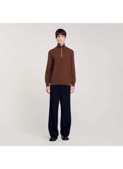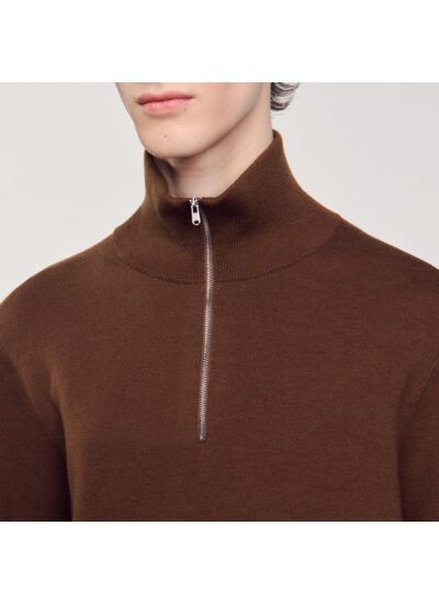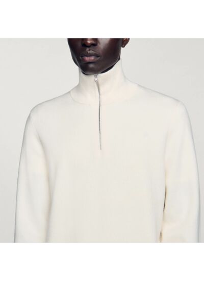 Pull en maille Milano, muni d'un col camionneur zippé côtelé, d'une fermeture zippée et de manches longues.