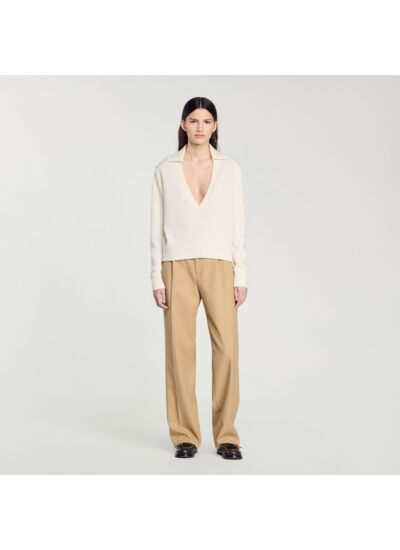 Comment entretenir ce pull col polo Sandro ? Pour préserver la qualité du tissu et la tenue du col, il est recommandé de suivre les instructions de lavage indiquées sur l’étiquette, généralement un lavage à froid et un séchage à plat.