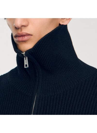 Pull en maille épaisse et côtelée, muni d'un col camionneur zippé et de manches longues.