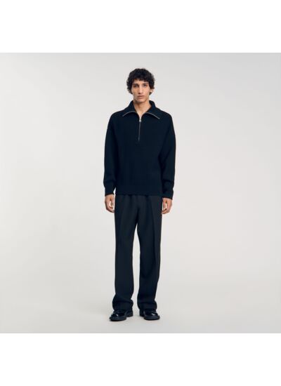 Quelle coupe propose ce pull col zippé Sandro ? Le design privilégie une coupe ajustée qui souligne la silhouette sans restreindre les mouvements, parfaite pour un look moderne et soigné.