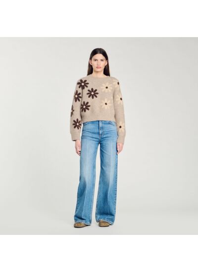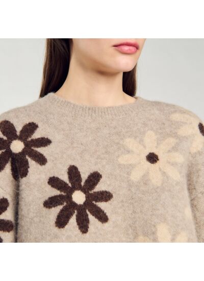 Pull en maille composée de laine et d'alpaga, muni d'un col rond, de manches longues et orné d'un jacquard à fleurs XXL.