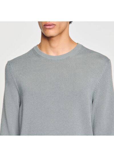 Pull en maille texturée point de riz, muni d'un col rond et de manches longues.