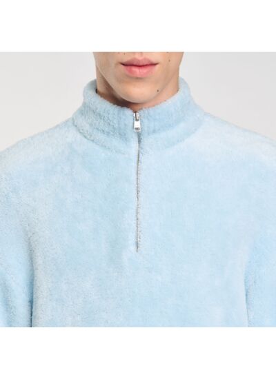Pull oversize en polaire bouclée, muni de manches longues et d'un col montant.