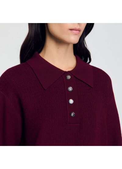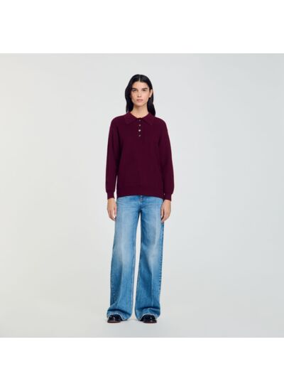 Quelle coupe et quel style propose ce pull Sandro ? Il présente une coupe ajustée qui souligne la silhouette tout en assurant confort et liberté de mouvement. Le col polo apporte une touche élégante et moderne, idéale pour un look casual chic ou habillé.