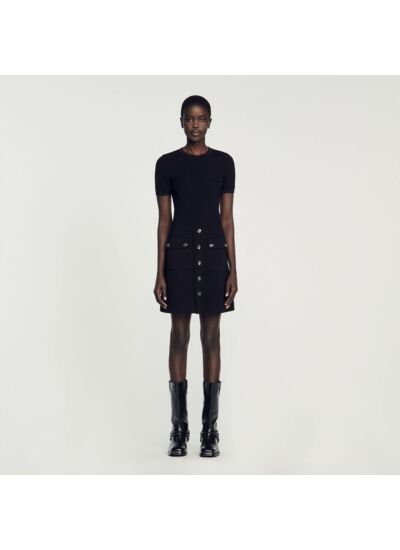 Comment choisir la bonne taille pour cette robe ? Référez-vous au guide des tailles Sandro disponible sur notre site. La maille offre une légère élasticité, ce qui assure un ajustement agréable sans serrer.