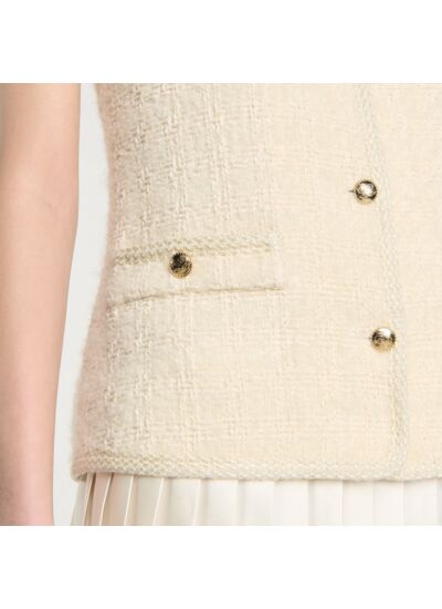 Quelle est la matière principale de cette robe Sandro ? Cette robe est confectionnée en tweed, un tissu noble et texturé qui apporte élégance et structure à votre silhouette.