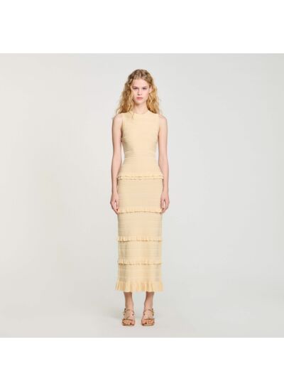Cette robe longue en maille à volants Sandro convient-elle à toutes les morphologies ? Oui, sa coupe fluide et ses volants apportent du mouvement et mettent en valeur différentes silhouettes, offrant élégance et confort.